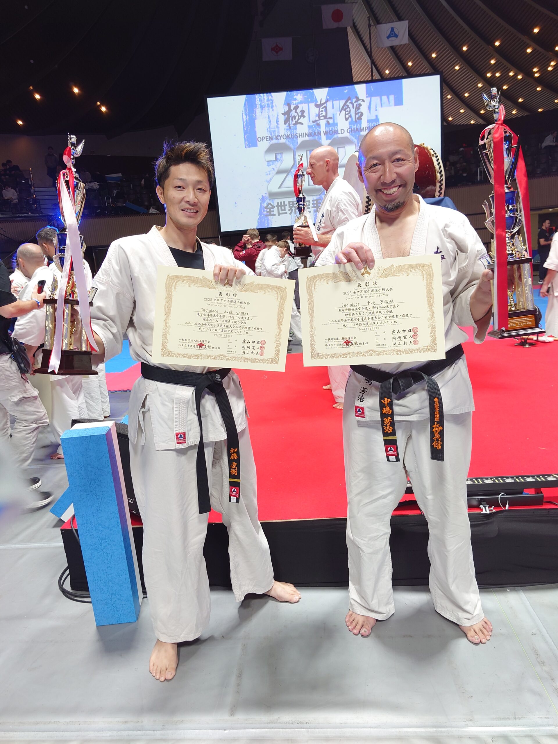 2025年11月23日 / 最終更新日 : 2026年1月11日 極真館 埼玉県西支部 試合結果 2025全世界空手道選手権大会(結果) 壮年団体戦(江田宜明・東島史宜)2位 上山芳治 3位 加藤宏樹 3位 応援ありがとうございました。 2025/11/22-23 代々木第二体育館 FacebookXBlueskyCopy